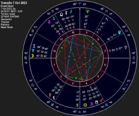 Am 7.10. befand sich Mars am absteigenden Mondknoten zusammen mit dem Transneptunier Zeus, der für die blitzeschleudernden Werkzeuge steht. Es kamen also "Krieger" aus der Vergangenheit.